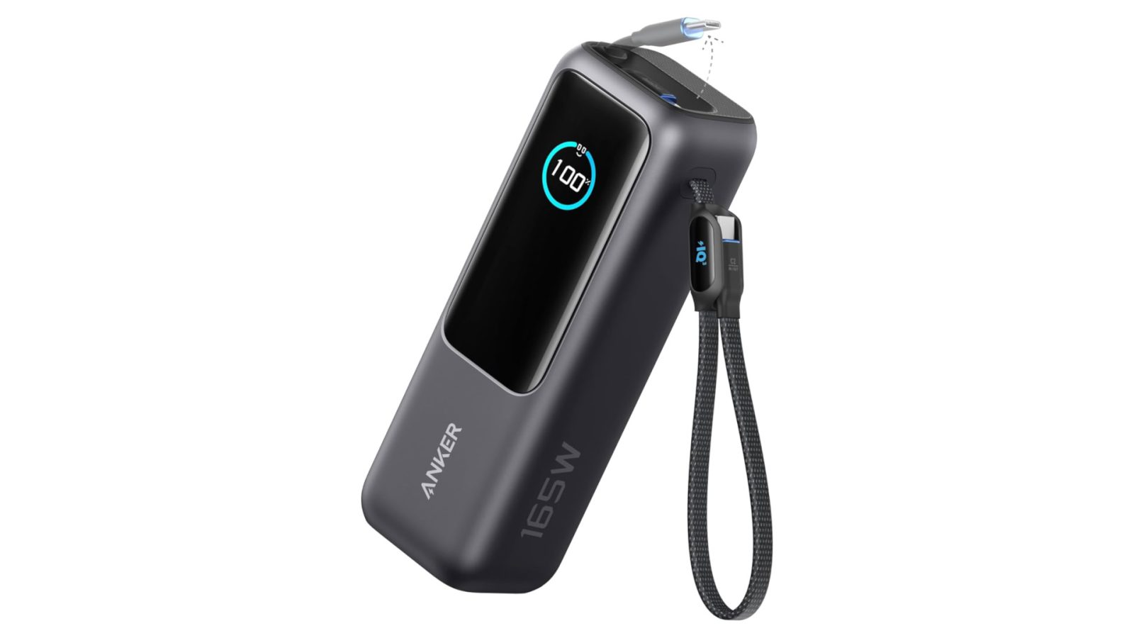 Questo modello è dotato di quattro porte; tre delle quali supportano la ricarica a 100W. Due porte sono fisiche mentre le altre due sono integrate nel design del power bank stesso: una funge da maniglia per il trasporto mentre l’altra si ritrae all’interno per facilitare lo stoccaggio.