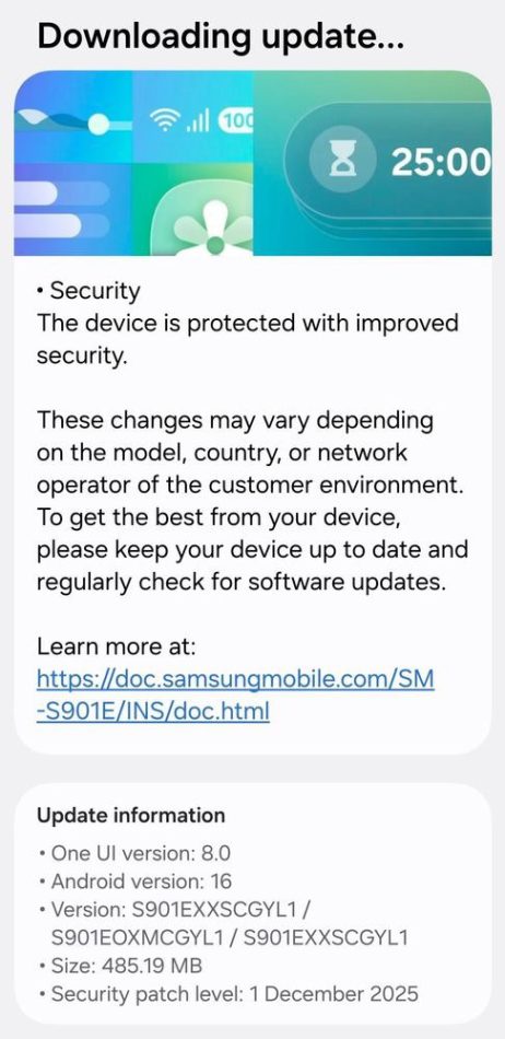 Samsung continua a rafforzare la sicurezza dei propri dispositivi con il rilascio dell’aggiornamento di sicurezza di dicembre 2025 per la serie Galaxy S22. Questa iniziativa segue le precedenti release dedicate alle linee Galaxy S25, S24 e S23, confermando l’impegno del produttore sudcoreano nel mantenere elevati standard di protezione per i suoi smartphone.