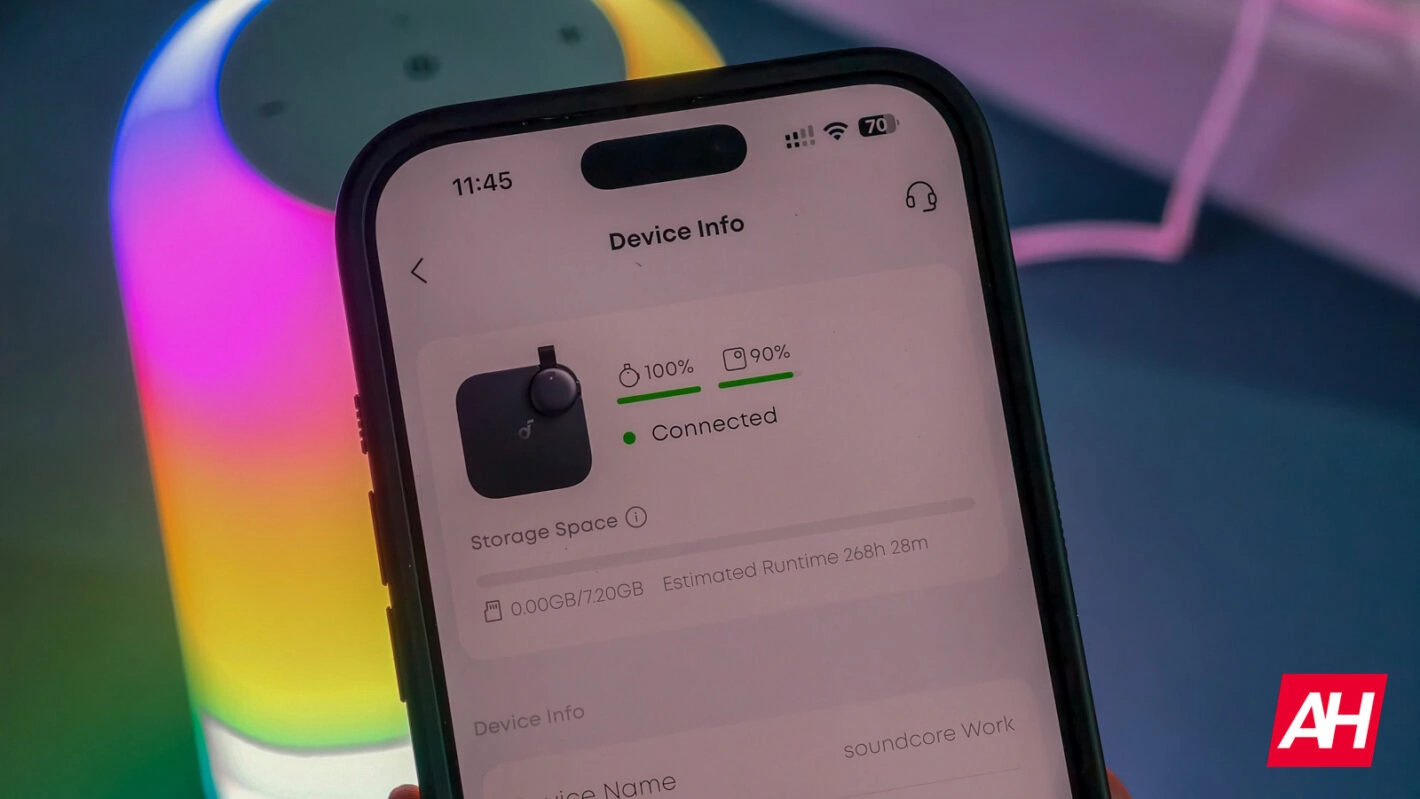L’utilizzo del Soundcore Work è supportato dall’app dedicata Soundcore, caratterizzata da un’interfaccia intuitiva che consente una rapida configurazione e gestione dei dispositivi associati. Dalla schermata principale si accede facilmente ai file audio salvati oppure alle informazioni sullo stato della batteria sia del registratore sia del case.