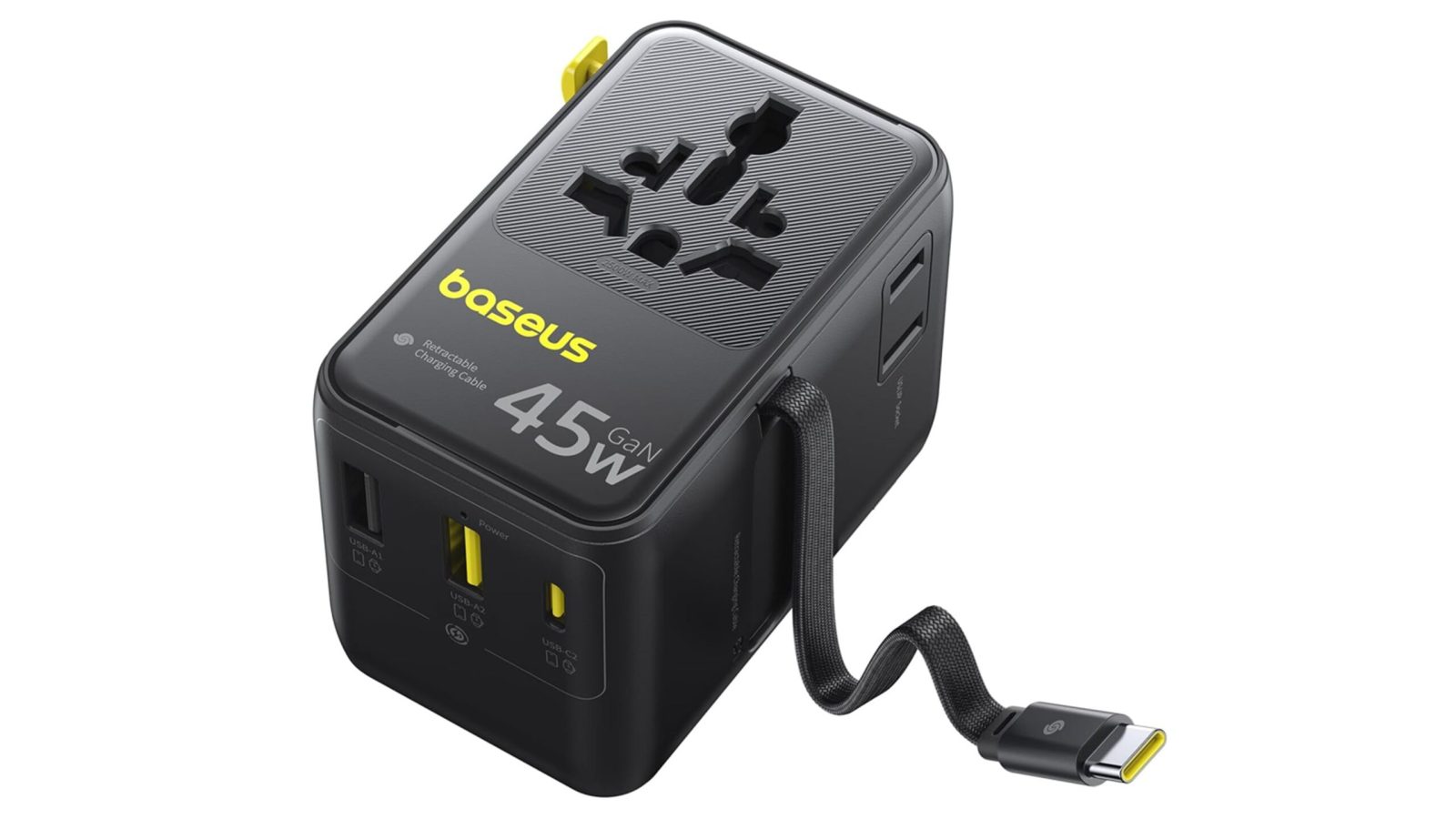 - Cavo USB-C retrattile integrato da 45W, capace di ricaricare rapidamente smartphone, tablet e numerosi modelli di laptop senza bisogno di cavi extra;