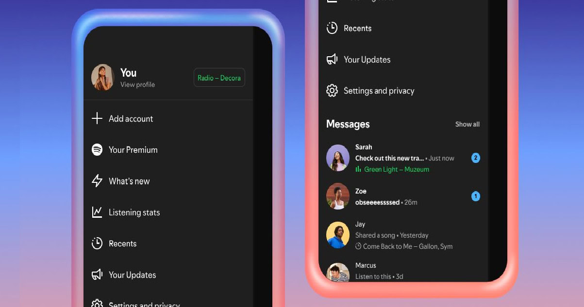 disponibilità delle nuove funzionalità spotify messages