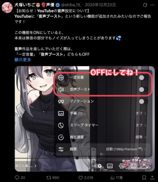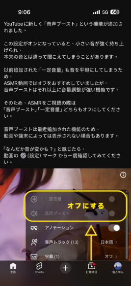 I creatori di contenuti ASMR suggeriscono agli spettatori di verificare che entrambe le funzioni — Voice Boost e Stable Volume — siano disattivate durante la visione dei loro video. Per farlo è necessario accedere al menu impostazioni (icona a forma di ingranaggio) presente nel lettore video e disabilitare manualmente queste opzioni audio. Poiché Voice Boost è una funzione recente, non tutti i dispositivi o i filmati potrebbero mostrarla nelle impostazioni; in caso di problemi nella qualità sonora è consigliabile controllare attentamente lo stato delle funzionalità attive.