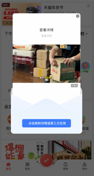 Analogamente, nel complesso Longwei Garden con circa 900 unità abitative, l’app “Lianzhang Menhu” presenta annunci a schermo intero che spingono gli utenti a visualizzare brevi video promozionali. Questi spot possono essere saltati solo dopo almeno cinque secondi e il tasto per la chiusura manuale è anch’esso molto piccolo, con il rischio di essere indirizzati verso pagine di download o acquisti non desiderati. Inoltre la schermata principale dell’app è popolata da offerte commerciali riguardanti shopping online, prenotazioni alberghiere e contenuti multimediali.