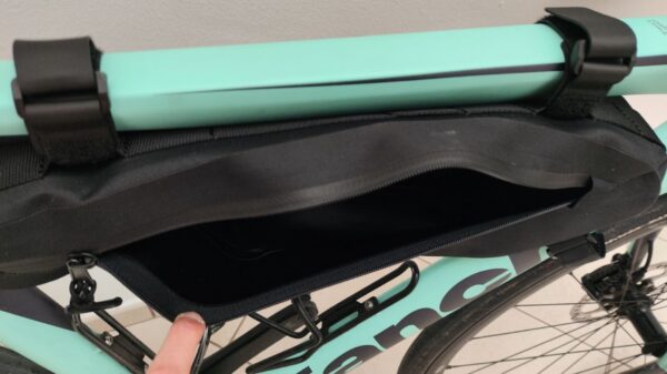 dal punto di vista estetico, il design resta pulito e funzionale, con un profilo che privilegia una forma razionale capace di integrarsi su telai gravel, MTB o da corsa tradizionali. la cerniera impermeabile scorre fluidamente e permette un accesso rapido al contenuto, un aspetto essenziale quando si è in movimento per recuperare un power bank, uno snack o un multitool senza perdere tempo.