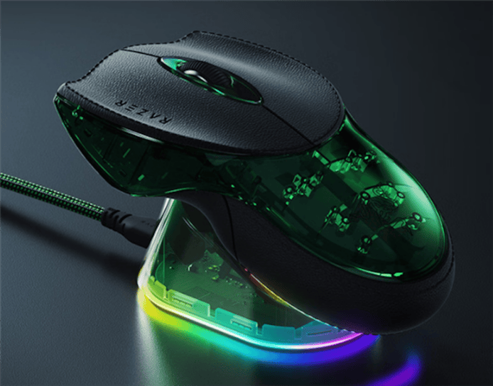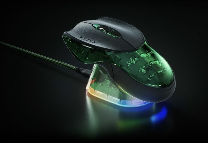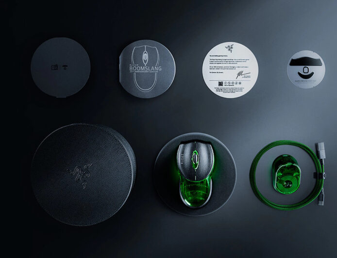 la confezione da collezione comprende il mouse boomslang in versione celebrativa, insieme al Razer Mouse Dock Pro per la ricarica wireless, a un tappetino in vetro per scorrimento preciso e a un cavo USB Type-A → Type-C. le dimensioni del mouse sono 138,4 × 81,9 × 34,5 mm e il peso si mantiene intorno ai 110 g. il design conserva l’ergonomia a due mani e una lacquer verde semitrasparente abbinata a tasti in PU leather, per una percezione di qualità superiore.