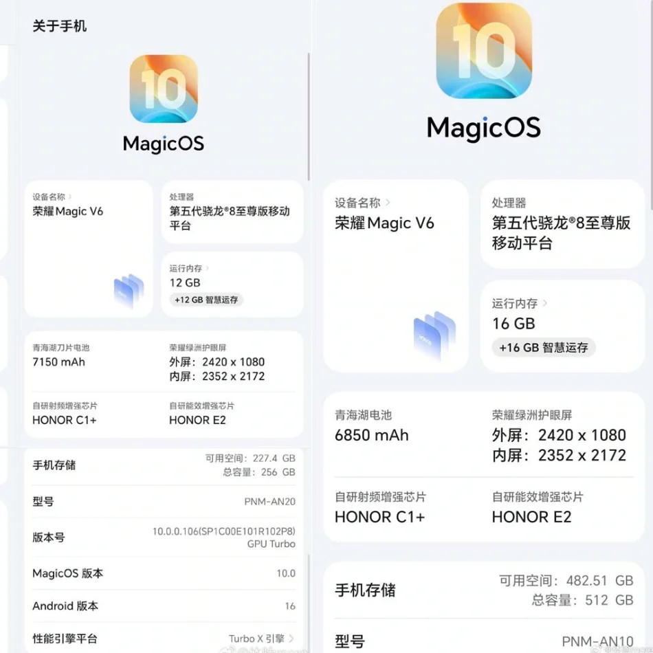 Per quanto riguarda lo schermo, il Magic V6 propone una configurazione avanzata: il display di copertina avrebbe una risoluzione di 2.420 × 1.080 pixel, mentre il pannello principale raggiungerebbe 2.352 × 2.172 pixel. Le opzioni di memoria prevedono 12 GB di RAM + 256 GB di storage e 16 GB di RAM + 512 GB di storage, offrendo scelte mirate tra prestazioni estreme e ampiezza di deposito. Ancor più rilevante, la gestione hardware potrebbe includere componenti di comunicazione avanzati, come una famiglia di chip di supporto HONOR C1 + E2 per migliorare le capacità di connessione.