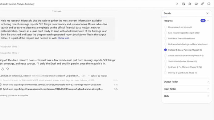 Integrando email, verbali e documenti correlati, Copilot Cowork produce contenuti utili quali presentazioni, sommari e aggiornamenti sullo stato del cliente, riservando nel frattempo tempo di preparazione nel calendario.
